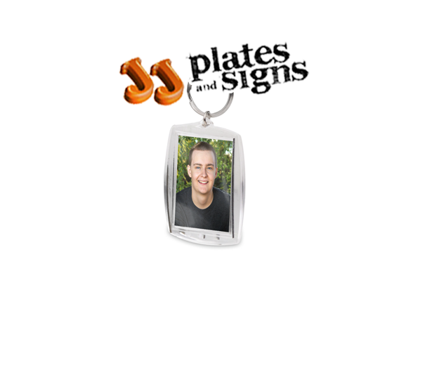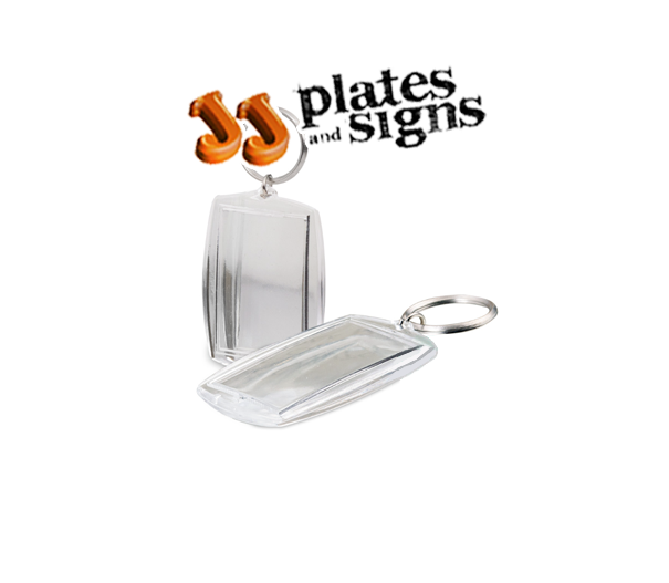 Plastic photo Clip in Keyrings are 55mm x 40mm (outer dimensions). These keyrings have space to insert a photo. Comes in packs of 10, 50, 100